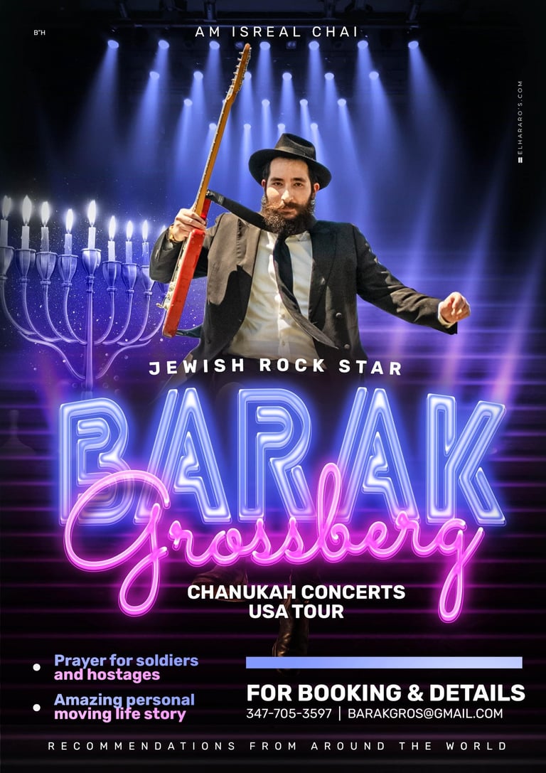 Experience the fusion of high-energy rock and timeless Chassidic soul from Israeli singer-songwriter Barak Grossberg.